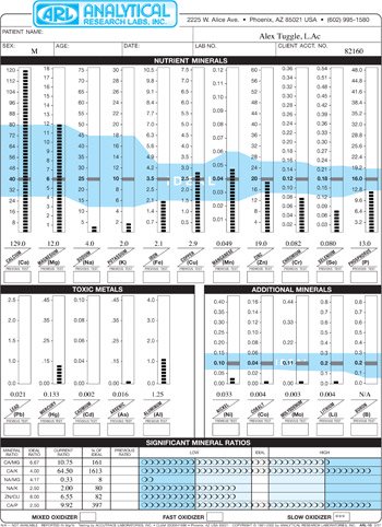 I use one of the most reputable ARL Hair Analysis labs (Analytical Research Labs) which was founded by Dr. Paul Eck. Dr. Paul Eck helped to pioneer this field of medicine back in the 1970's when he conducted years of research into the mechanisms that effect the mineral levels and ratios. Dr. Paul Eck found that Sodium and Potassium were relative to the Adrenal hormones Aldosterone and Cortisol, and therefore he could assess the stage of Stress a person was in.